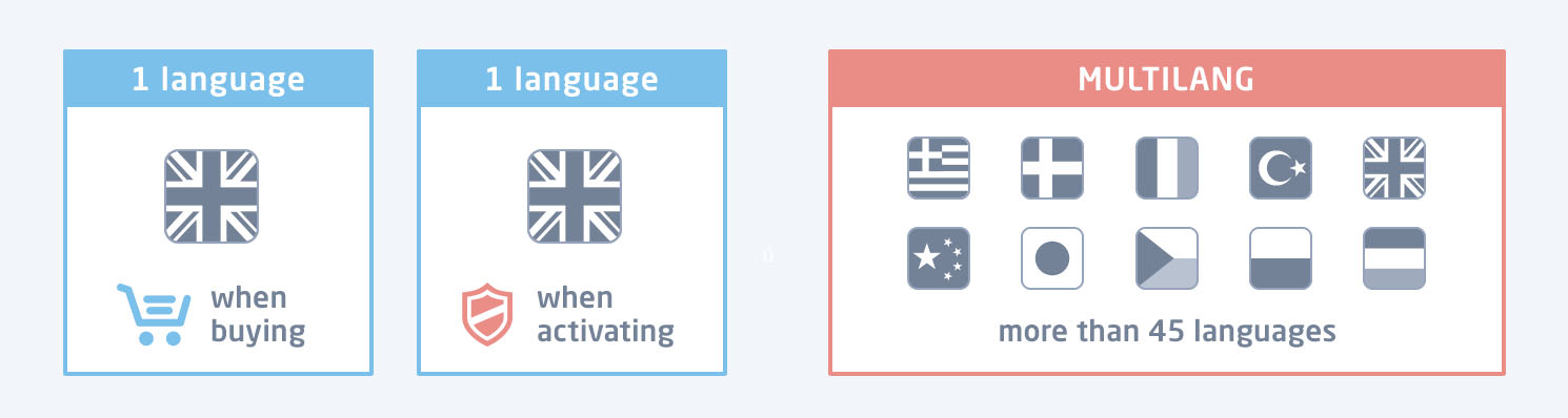 当社製品をご購入の際は、単言語版とMULTILINGUAL (多言語)版のいずれかをお選びいただけます。