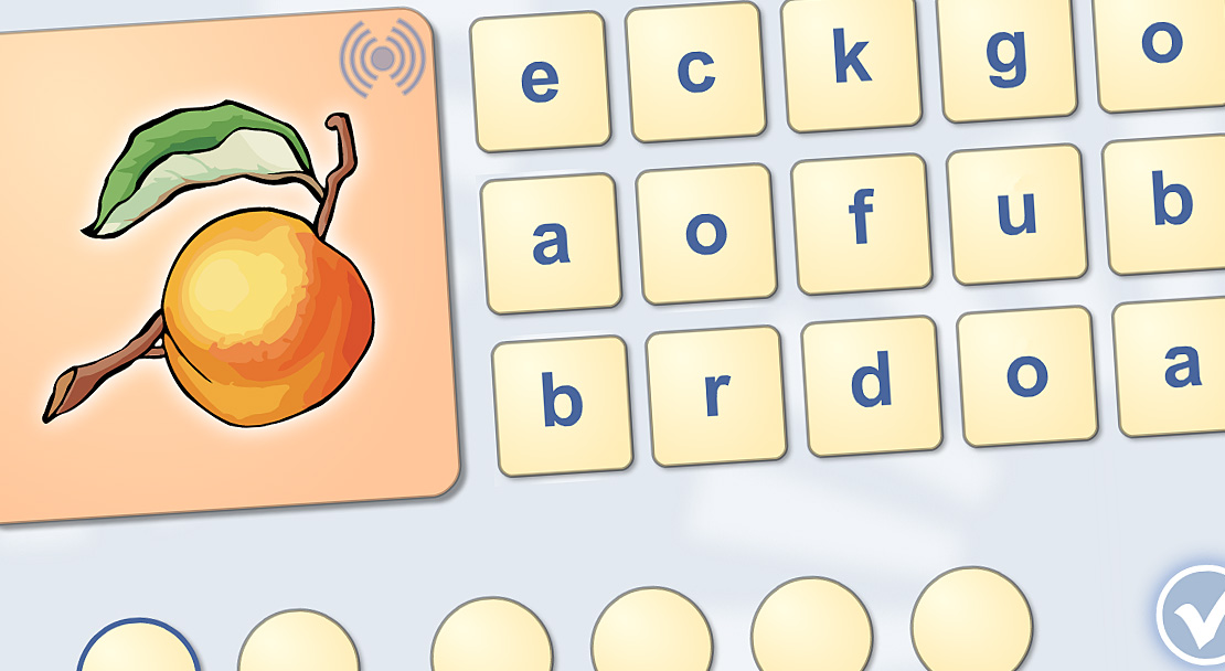 母音と子音の探し。単語には画像が付いている。