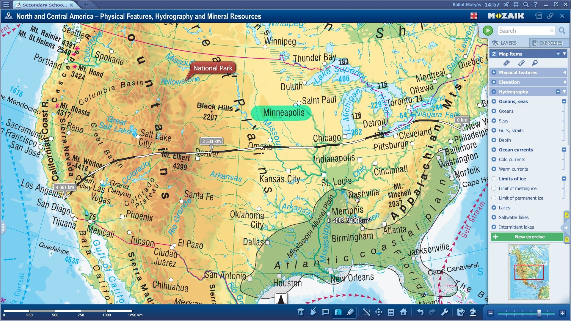 Besides our printed textbooks and digital solutions, we are really proud of our super detailed and fun atlas collection for the subject of Geography. For interactive boards, we have had these maps for a long time in a separate framework program, called mozaMap and you may have already heard about the compact miniMap tool as well. However, it was high time to integrate these maps into our educational presentation software mozaBook to make everything more manageable and smoother in the classroom.First, simply select the map from your shelf, open it up, and check all the possibilities and map variations you can choose from… five continents, demographic views, populations, the environmental state of the Earth, so literally everything you may need in a Geography lesson is at your fingertips. Let’s select North America and see what we can do with the map: